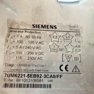 SIEMENS 7UM6221-5EB92-3CA0/FF (BF1012106581) GENERATOR PROTECTION RELAY SUPERIOR QUALITY PRODUCT FREE SHIPPING WORLDWIDE